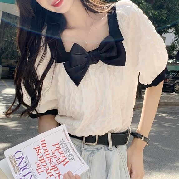 レディース カットソー 半袖 パフスリーブ スクエアカラー リボン プルオーバー ルーズ きれいめ 上品 おしゃれ お洒落 大人可愛い 大人女子 カジュアル かっこいい キュート ラブリー ガーリー フェミニン レトロ 主役級 存在感 こなれ感 抜け感 夏 10代 20代 お出かけ デート 女子会 お泊まり 旅行 ショッピング レストラン アウトドア ガーデン 休日 普段使い 韓国 オルチャン ファッション コーデ スタイルアップ インスタ映え S M L XL 2XL 3XL 4XL 5XL ホワイト