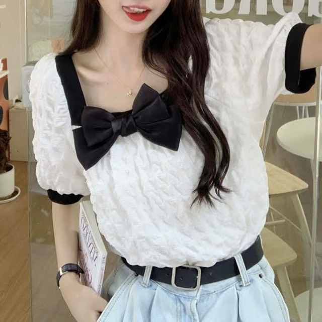 パフスリーブやスクエアカラー、リボンデザインが可愛さを引き立てる半袖カットソーです。ルーズなシルエットが大人女子にぴったりの上品さを演出します。この一枚で主役級の存在感を放ち、どんなシーンにもマッチする着こなしを楽しめます。カジュアルなデートから女子会、旅行やショッピングまで、幅広いシーンで活躍すること間違いなしのアイテムです。
