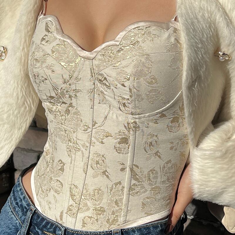 可愛い花柄が特徴のこのキャミソールは、夏のデートやお出かけにぴったりのアイテムです。スリムなシルエットで美しく着こなせます。