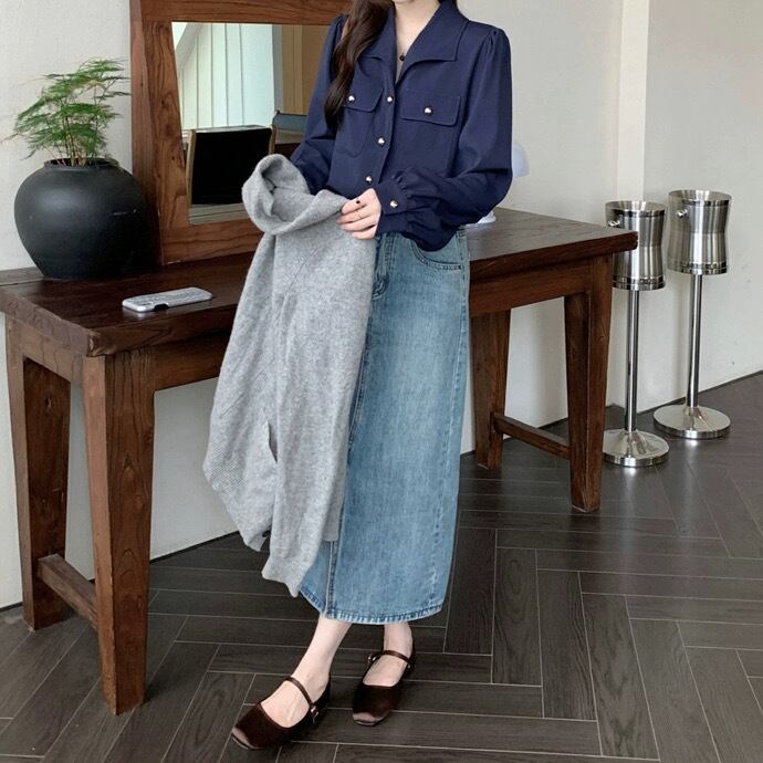 フレンチガーリーやきれいめスタイルにピッタリな襟付き長袖シャツ。