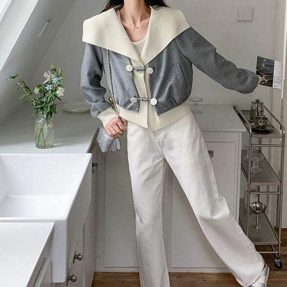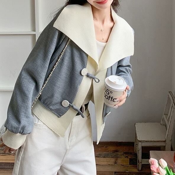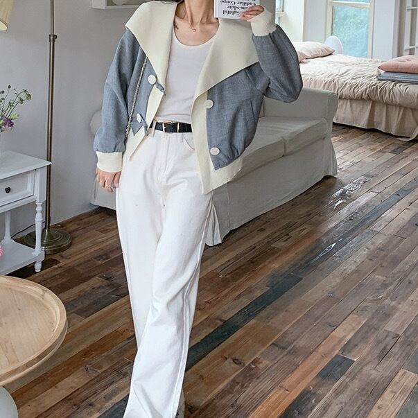 レディース トップス ブルゾン カーディガン 上着 羽織 前開き ショート 長袖 リブ Vネック 襟付き BIGカラー でか襟 大きい襟 ポケット フェミニン ハイウエスト ボタン 切り替え 配色 かわいい 大人可愛い きれいめ シンプル カジュアル おしゃれ こなれ感 ガーリー 個性的 キュート 無地 春 秋 ママ 学生 通学 デート お出かけ 公園 女子会 休日 ショッピング お花見 韓国 オルチャン コーデ 脚長 普段使い 着回し サイズ S M L XL 小さいサイズ 大きいサイズ グレー 灰色