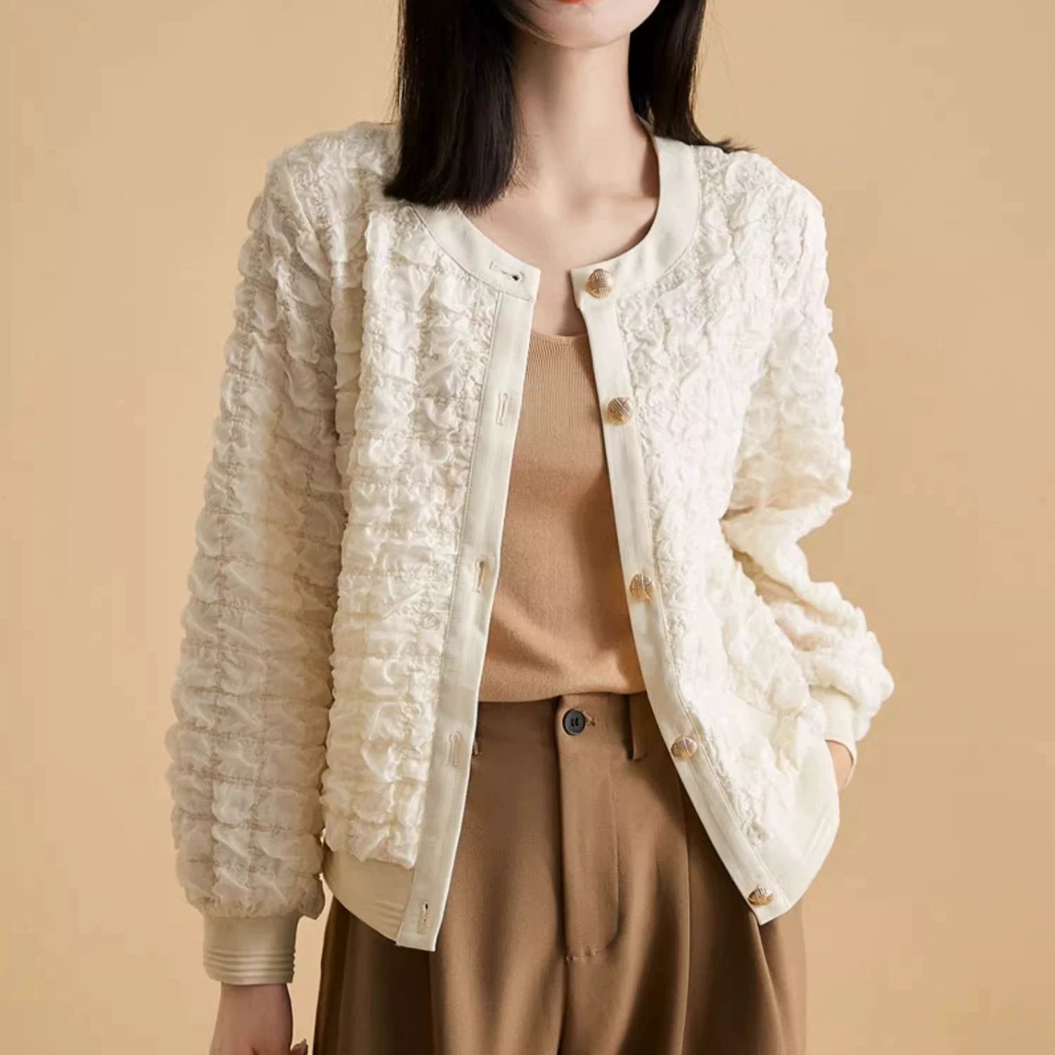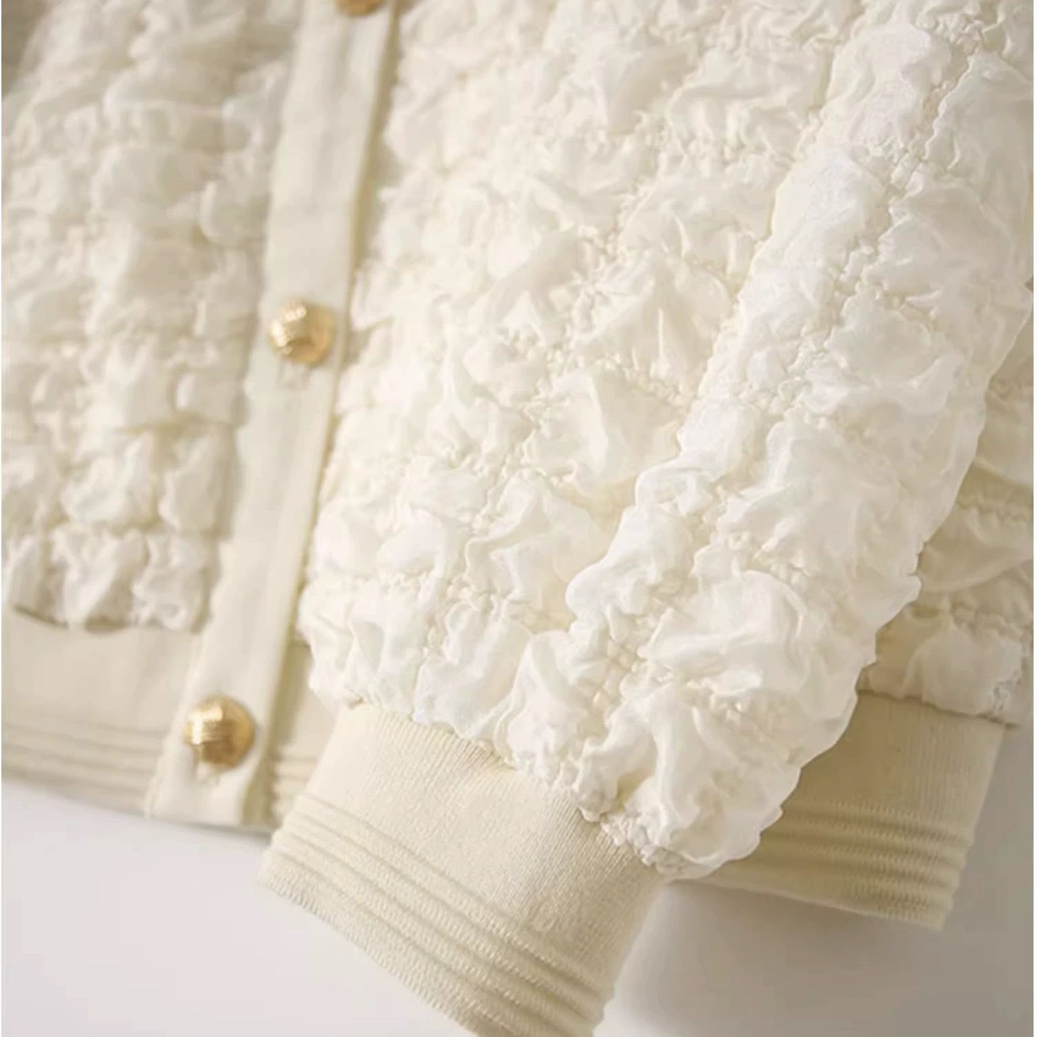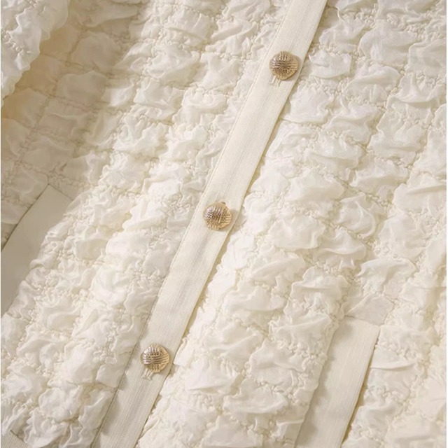 レディース トップス ジャケット ブルゾン 上着 羽織 前開き ノーカラージャケット 長袖 ラウンドネック 襟なし ノーカラー フェミニン ボタン ぽこぽこ かわいい 大人可愛い きれいめ シンプル カジュアル 上品 おしゃれ エレガント ファッショナブル こなれ感 ガーリー キュート ナチュラル 無地 春 秋 ママ デート お出かけ 公園 女子会 休日 ガーデン ショッピング カフェ 韓国 コーデ 普段使い 着回し モテ トレンド 流行 サイズ展開 S M L XL 2XL 大きいサイズ オフホワイト