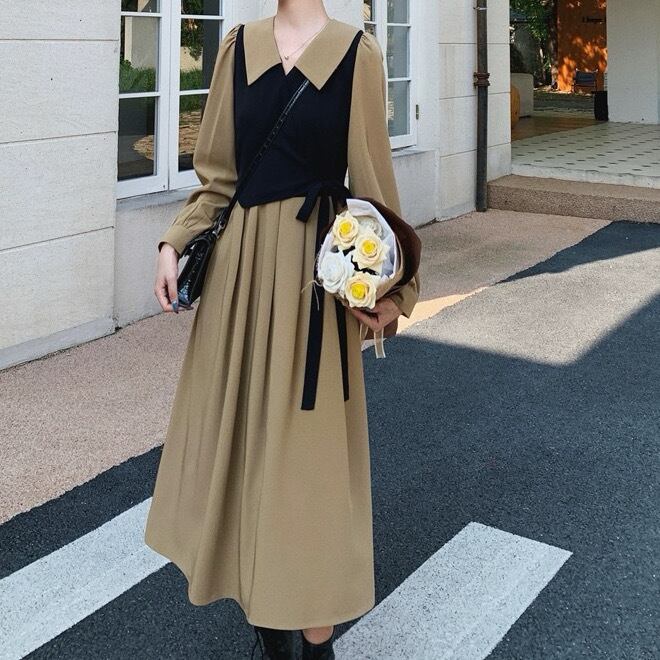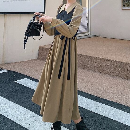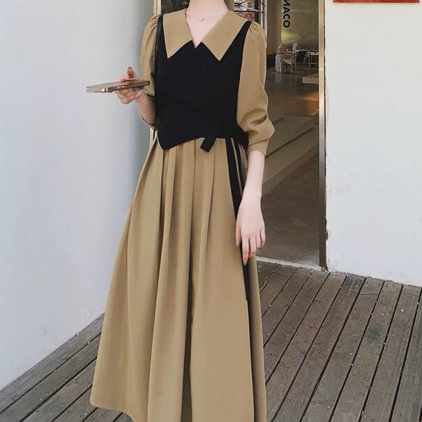 レディース スカート ワンピース シャツ ベスト オールインワン シャツワンピ フレア フレアスカート ロングスカート ロング 長袖 パフスリーブ Vネック 襟付き フレア スリム 細身 Aライン 切り替え ドッキング フェミニン タック リボン ハイウエスト 切り替えデザイン かわいい 大人可愛い シンプル カジュアル おしゃれ ガーリー クラシカル 無地 春 秋 デート お出かけ ガーデン ショッピング 重ね着 韓国 コーデ 体型カバー 脚長 普段使い 着回し レイヤード S M L XL カーキ