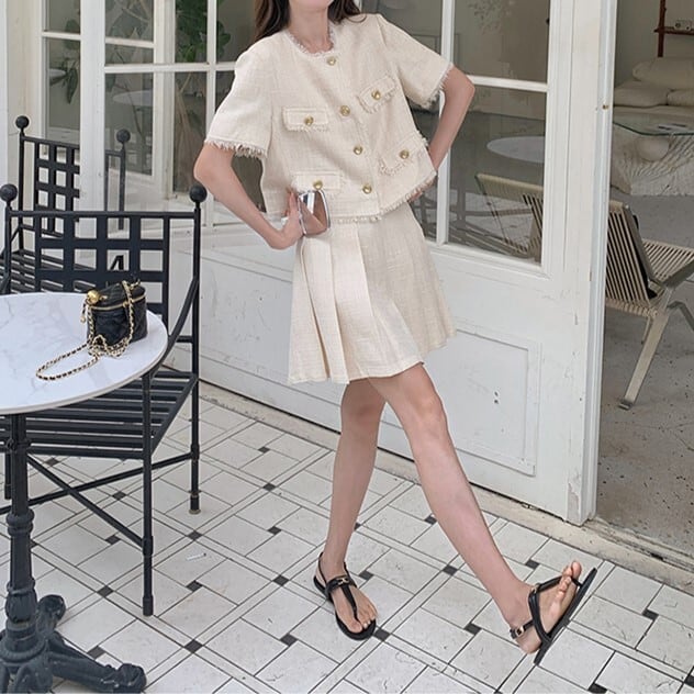 レディース スカート ジャケット ドレス ショート 半袖 ポケット ボタン 大人可愛い きれいめ 上品 おしゃれ ラフ ガーリー クール エレガント 存在感 フォーマル 都会的 ナチュラル 無地 春 夏 結婚式 二次会 披露宴 発表会 デート お出かけ パーティー イベント レストラン 女子会 休日 ホテル コンサート カフェ お揃い 韓国 コーデ 楽ちん プレゼント モテ インスタ映え XS S M L XL 2XL オフホワイト