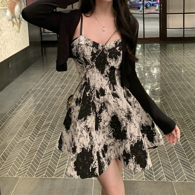 キャミソールフレアワンピースとカーディガンの2点セット。