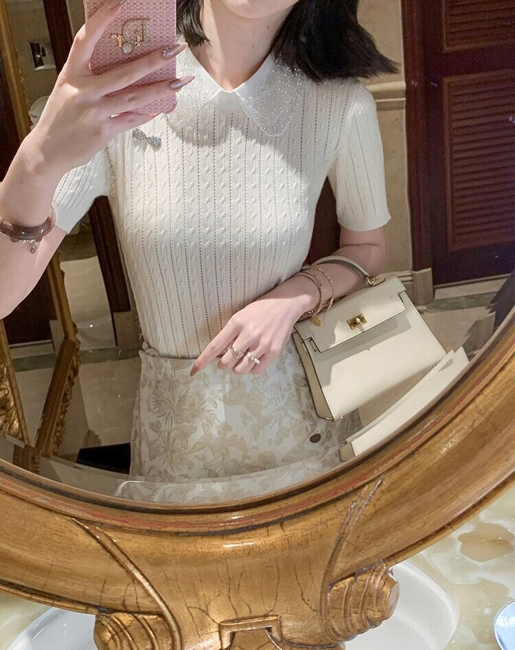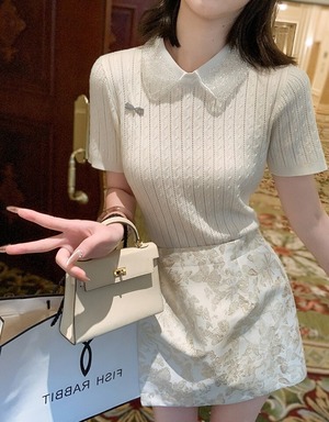 大人可愛い、上品な襟付きニットのご紹介です。シンプルでありながら、都会的でナチュラルな雰囲気を醸し出すデザインが特徴です。様々なシーンに合わせやすく、通勤やデート、お出かけ、イベントなど様々な場面で活躍してくれること間違いなし!春夏の季節には特におすすめです。