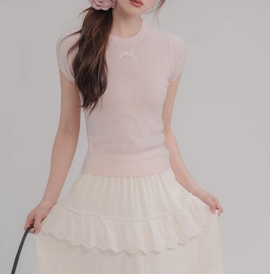 トップス ニット サマーニット 半袖 フェミニン リボン かわいい 大人可愛い きれいめ シンプル カジュアル 上品 おしゃれ レトロ こなれ感 ラフ ガーリー ルーズ 個性的 主役級 存在感 抜け感 ラブリー キュート 都会的 ロマンティック ナチュラル 夏 OL 学生 デート お出かけ イベント 旅行 女子会 休日 ショッピング コンサート ライブ カフェ オルチャン コーデ 楽ちん 普段使い 着回し モテ 清楚 インスタ映え フリーサイズ ホワイト ブラック グレー ピンク ブルー
