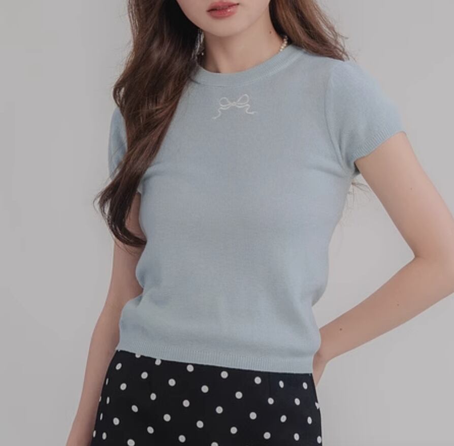 サマーニット半袖トップスが登場!フェミニンでかわいいリボンデザインが特徴で、大人可愛い雰囲気漂う一枚です。シンプルで上品なデザインなので、カジュアルからきれいめまで幅広いスタイリングに活躍します。