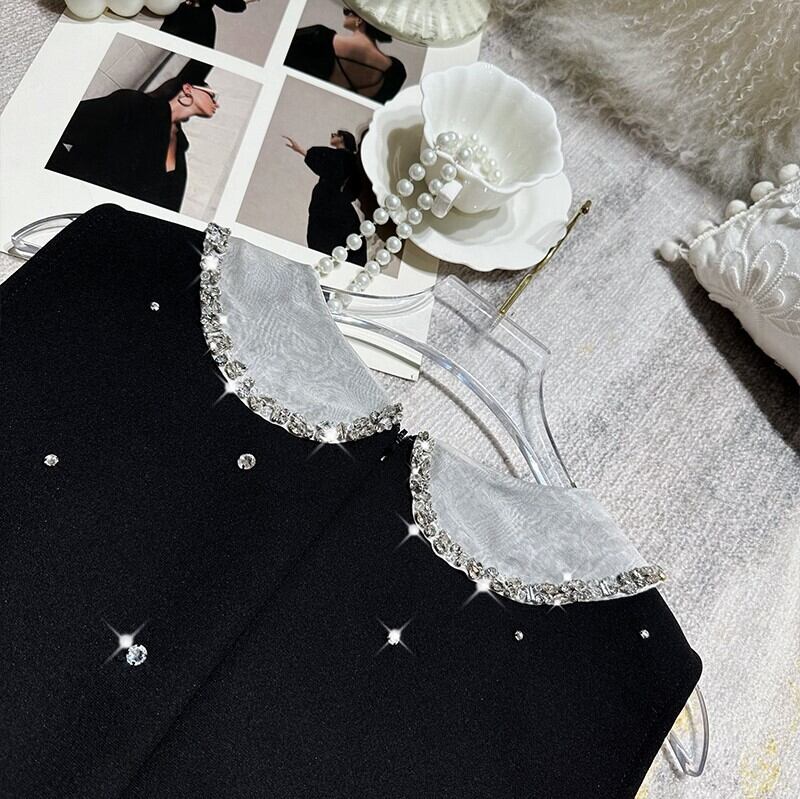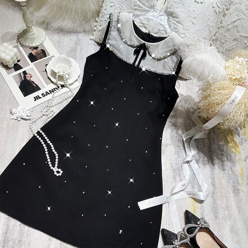 レディース ワンピース ドレス ショート ノースリーブ 襟付き Aライン リボン ファスナー ハイウエスト 大人可愛い きれいめ 上品 おしゃれ かっこいい ラフ ガーリー クール エレガント 存在感 フォーマル 都会的 ナチュラル 無地 春 夏 結婚式 二次会 披露宴 発表会 デート お出かけ パーティー イベント レストラン 女子会 休日 ホテル コンサート 韓国 コーデ 楽ちん プレゼント 美脚 脚長 モテ インスタ映え S M L XL ブラック