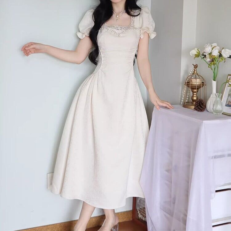 レディース ワンピース ドレス ロング 半袖 パフスリーブ スクエアネック ファスナー ハイウエスト 大人可愛い きれいめ 上品 おしゃれ かっこいい ラフ ガーリー クール エレガント 存在感 フォーマル 都会的 ナチュラル 無地 春 夏 結婚式 二次会 披露宴 発表会 デート お出かけ パーティー イベント レストラン 女子会 休日 ホテル コンサート 韓国 コーデ 楽ちん プレゼント 美脚 脚長 モテ インスタ映え M L XL 2XL 3XL 4XL 大きいサイズ ホワイト
