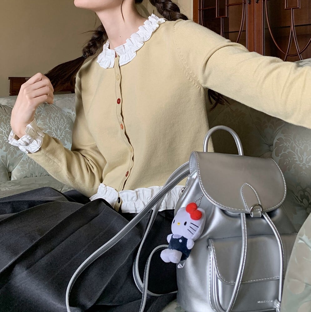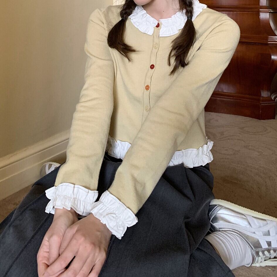 レディース トップス カーディガン ショート 長袖 襟付き フリル ボタン 大人可愛い きれいめ おしゃれ かっこいい ラフ ガーリー クール 都会的 ナチュラル 無地 春 秋 通勤 デート お出かけ お泊まり イベント 旅行 レストラン 公園 女子会 休日 ホテル ショッピング コンサート ライブ カフェ 韓国 コーデ 楽ちん プレゼント 普段使い 着回し モテ インスタ映え XS S M グレー イエロー ライトブルー