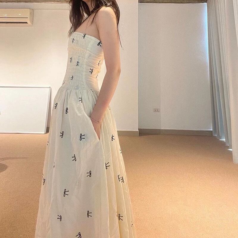 レディース スカート ワンピース オールインワン ベアトップ チューブトップ フレアスカート ロングスカート ロング 袖なし ノースリーブ フレア Aライン 切り替え フェミニン タックプリーツ ポケット ハイウエスト 伸縮性 シャーリング ゴム 綿 かわいい 大人可愛い カジュアル おしゃれ ラフ ガーリー ルーズ 抜け感 キュート クラシカル ナチュラル リボン 春 夏 デート お出かけ リゾート 旅行 海 ビーチ 女子会 休日 ショッピング 韓国 コーデ 楽ちん 普段使い S M L アプリコット