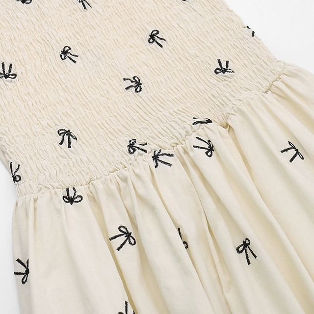 アプリコットカラーにブラックのリボン柄が大人可愛い印象を与えてくれるアイテムです。