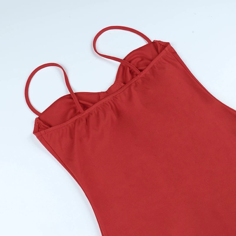 ミニ丈のキャミワンピースドレス。