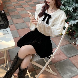 レディース スカート トップス シャツ セットアップ ミニ ショート 膝上 長袖 萌袖 ラウンドネック 襟付き りぼんタイ Aライン フェミニン フリル リボン ハイウエスト レースアップ かわいい 大人可愛い 上品 レトロ ガーリー モード系 エレガント モダン 存在感 ラブリー キュート クラシカル ロマンティック ナチュラル 無地 春 学生 通学 デート レストラン 女子会 休日 ショッピング コンサート ライブ カフェ 普段使い 着回し インスタ映え S M L フリーサイズ 黒 アプリコット