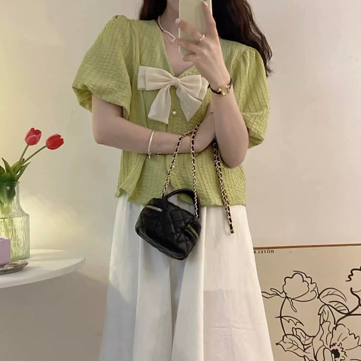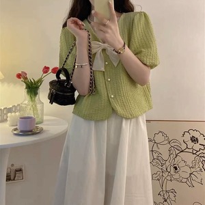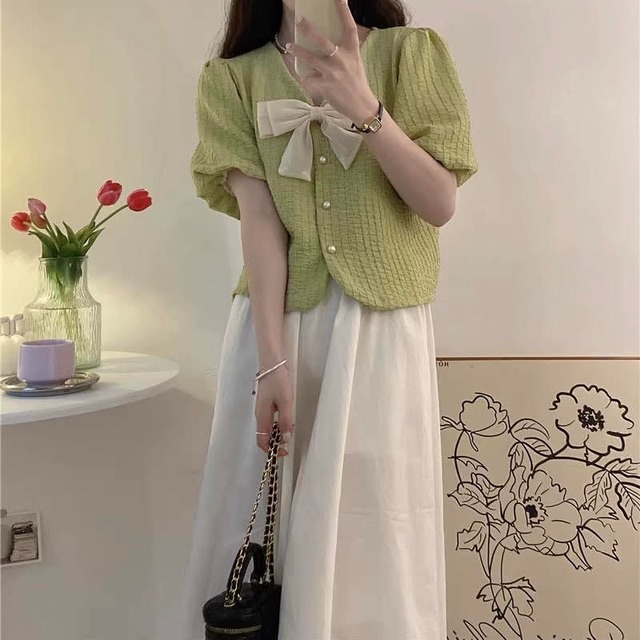 レディース トップス カーディガン 半袖 Vネック リボン ショート丈 ボタン 前開き スリム 細身 きれいめ 上品 おしゃれ お洒落 大人可愛い 大人女子 シンプル カジュアル かっこいい エレガント キュート ラブリー ガーリー フェミニン レトロ 主役級 存在感 こなれ感 抜け感 夏 10代 20代 30代 お出かけ デート 女子会 ショッピング レストラン 旅行 お泊まり 休日 普段使い 韓国系 オルチャン ファッション コーデ スタイルアップ インスタ映え S M L XL ピンク グリーン