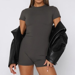 ジャンプスーツ セットアップ オールインワン レディース つなぎ ミニ ショート 半袖 ラウンドネック タイト スリム 細身 ファスナー ハイウエスト 伸縮性 異国風 ストレッチ きれいめ シンプル カジュアル おしゃれ かっこいい レトロ こなれ感 ラフ スポーティー 個性的 クール 存在感 抜け感 都会的 アメリカン アクティブ ナチュラル セクシー 無地 春 夏 秋 ロングシーズン 大会 お出かけ お泊まり イベント ジム 休日 楽ちん 普段使い S M L 黒 ブラック グレー