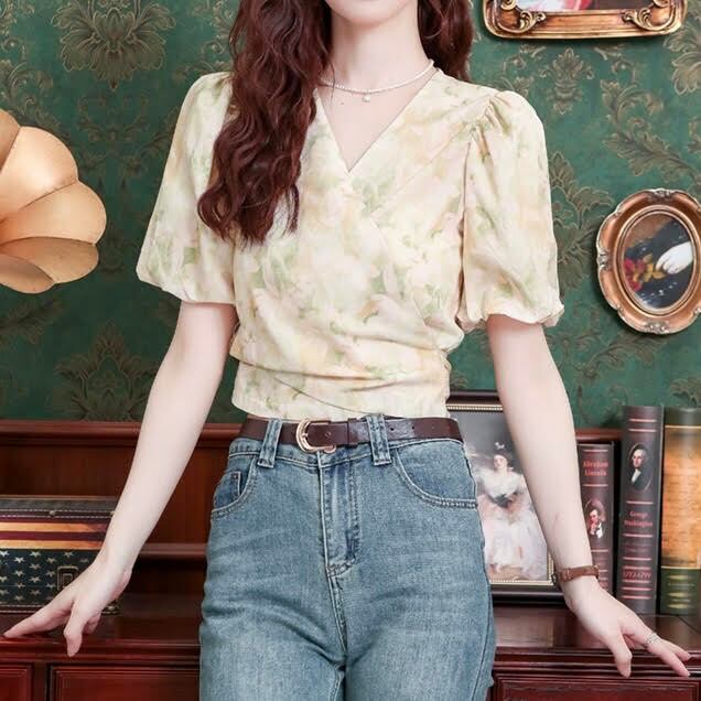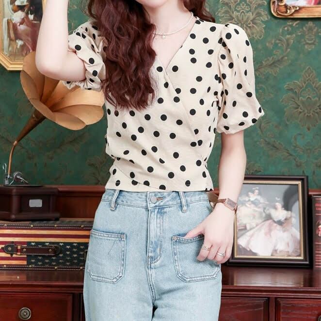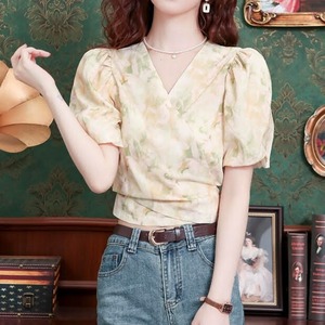 レディース トップス シャツ 半袖 パフスリーブ Vネック バックリボン シフォン 花柄 ドット柄 プルオーバー スリム 細身 きれいめ 上品 おしゃれ お洒落 大人可愛い 大人女子 シンプル カジュアル エレガント キュート ラブリー ガーリー フェミニン レトロ 主役級 存在感 こなれ感 抜け感 夏 20代 30代 お出かけ デート 女子会 ショッピング レストラン 旅行 お泊まり 普段使い デイリー 韓国系 オルチャン ファッション コーデ スタイルアップ インスタ映え S M L XL 2XL