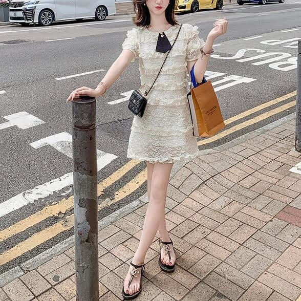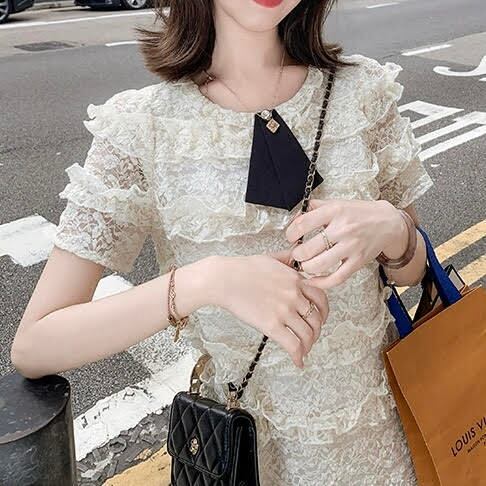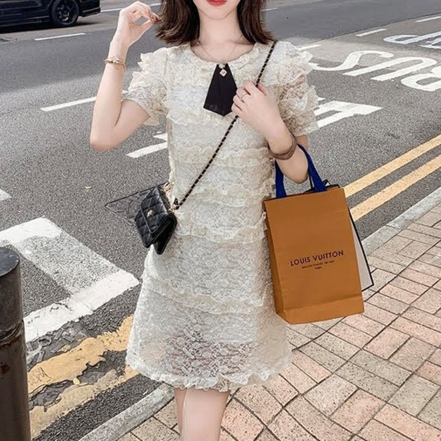 レディース カットソー トップス 半袖 リボン レース フリル 透け感 ワンピース ショート丈 Aライン ハイウエスト スリム 細身 きれいめ 上品 おしゃれ お洒落 大人可愛い 大人女子 シンプル カジュアル エレガント キュート ラブリー ガーリー フェミニン レトロ 主役級 存在感 こなれ感 抜け感 夏 10代 20代 お出かけ デート 女子会 ショッピング お泊まり 休日 普段使い デイリー 韓国系 オルチャン ファッション コーデ スタイルアップ インスタ映え 脚長 S M L アプリコット