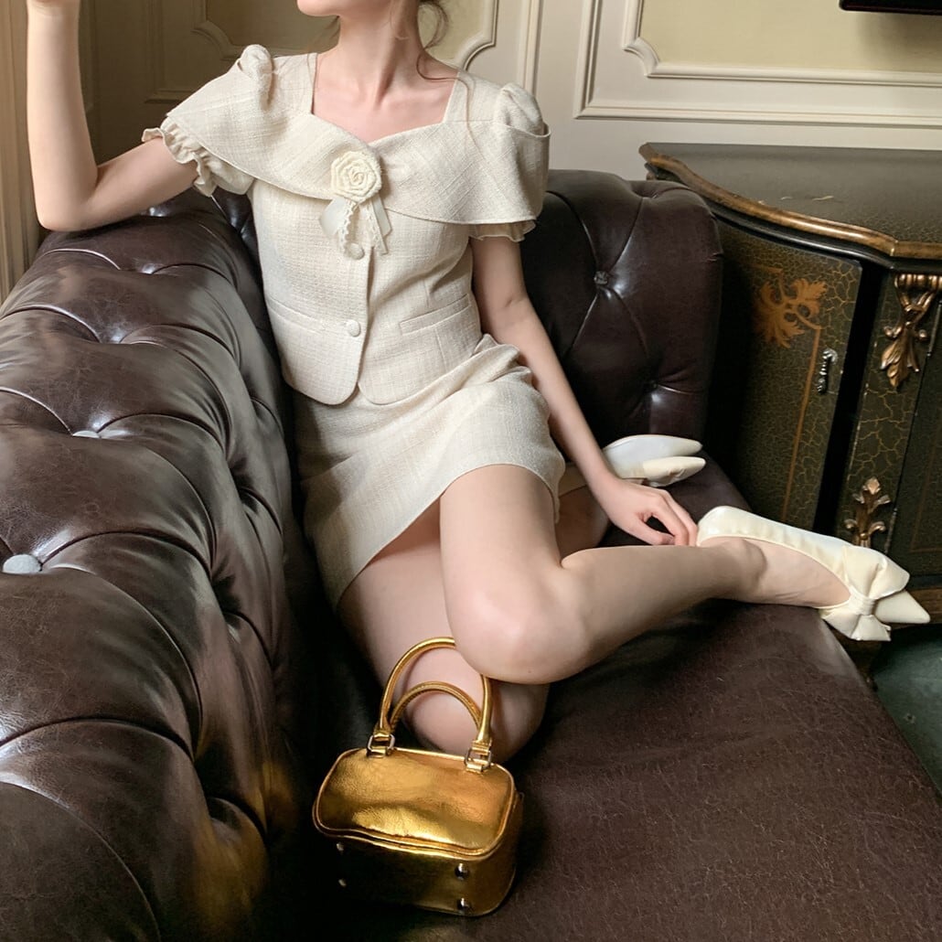 大人可愛い雰囲気を漂わせる、リボンとボタンが可愛いスカートとトップスのセットアップ。ショート丈と半袖のデザインで、女性らしさを引き立てつつも都会的な印象を与えます。チェック柄が春夏らしい爽やかさを演出し、通勤やデート、お出かけからイベントやパーティーまで幅広いシーンで活躍します。存在感のあるデザインで、女性らしいエレガンスや大人の魅力を演出する一着です。