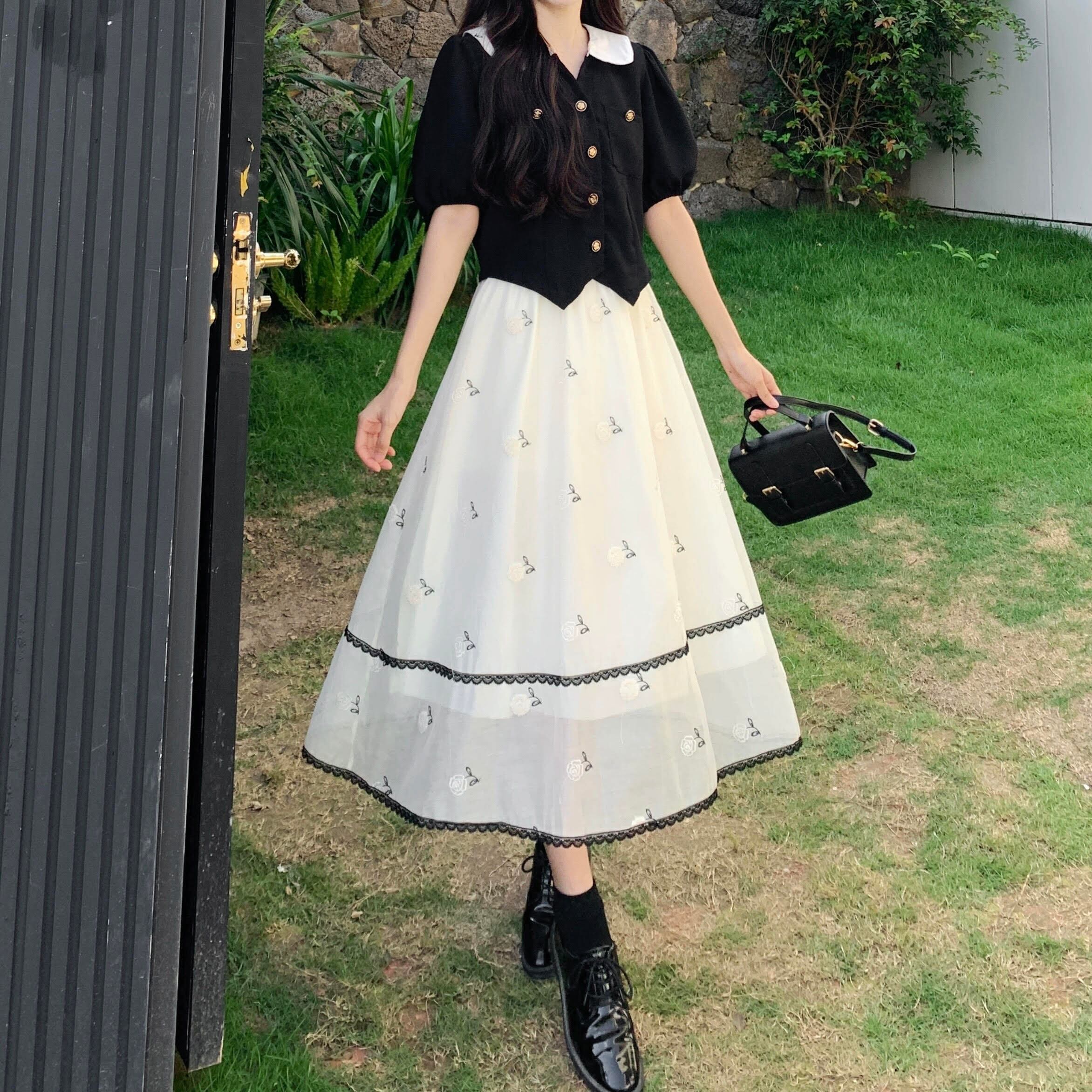 レディース セットアップ カットソー 半袖 襟付き ポロカラー ボタン 前開き スカート ミモレ丈 レース 透け感 ハイウエスト 2点セット 上下セット スリム 細身 きれいめ 上品 おしゃれ お洒落 大人可愛い 大人女子 シンプル カジュアル かっこいい エレガント キュート ラブリー ガーリー レトロ 主役級 存在感 こなれ感 抜け感 夏 10代 20代 お出かけ デート 女子会 普段使い 韓国 オルチャン ファッション コーデ インスタ映え M L XL 2XL 3XL 4XL ホワイト ブラック