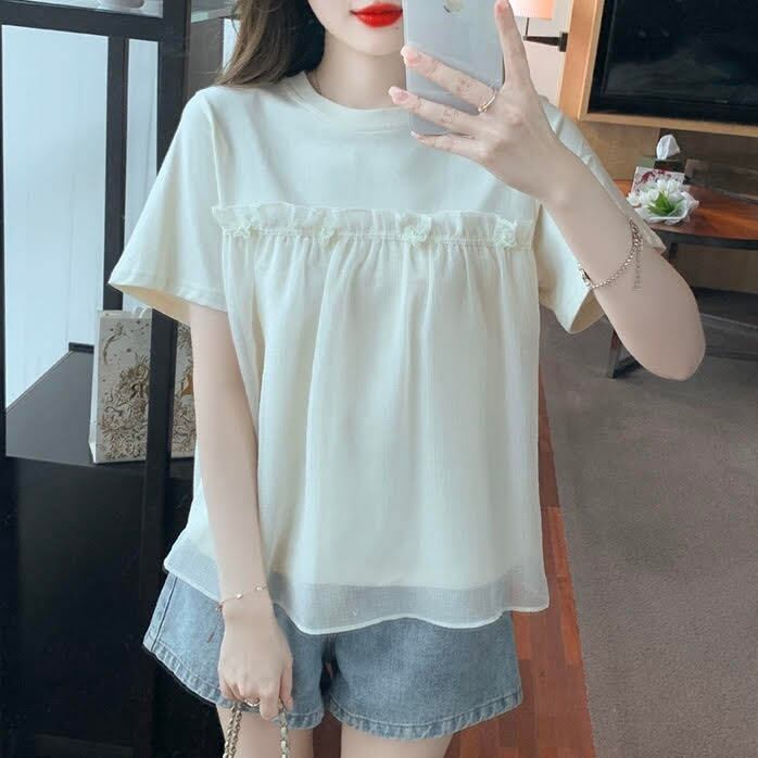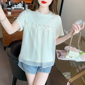 レディース トップス シャツ 半袖 ラウンドネック シフォン 透け感 フリル プルオーバー 無地 スリム 細身 きれいめ 上品 おしゃれ お洒落 大人可愛い 大人女子 シンプル カジュアル エレガント キュート ラブリー ガーリー フェミニン レトロ 主役級 存在感 こなれ感 抜け感 夏 10代 20代 30代 お出かけ デート 女子会 ショッピング レストラン 旅行 お泊まり 普段使い デイリー 韓国系 オルチャン ファッション コーデ スタイル インスタ映え S M L XL 2XL アプリコット
