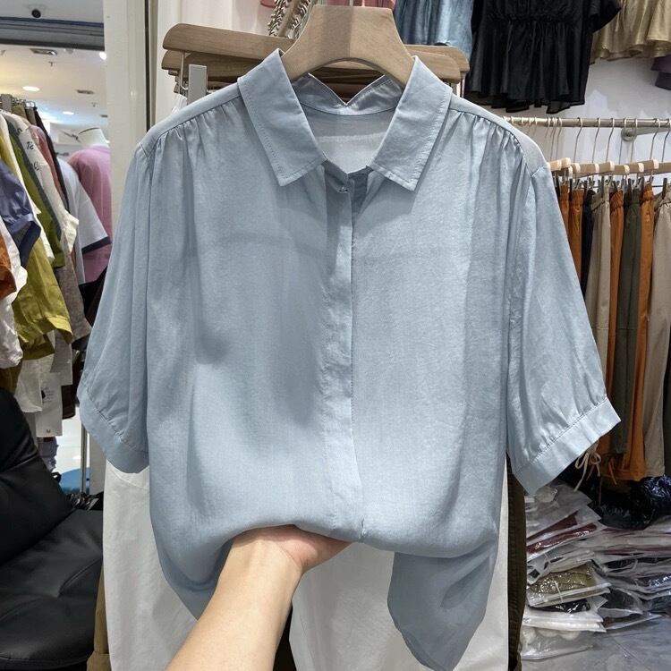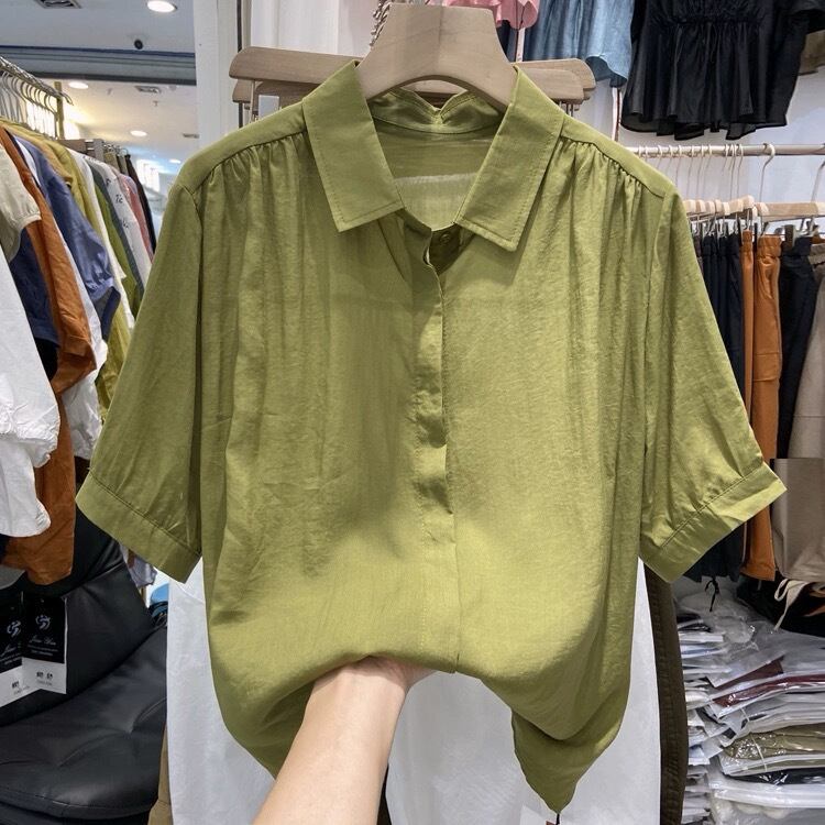 レディース トップス シャツ 前開き 半袖 パフスリーブ Vネック 襟付き ポロカラー スリム プリーツ 透け感 コンサバ ボタン 落ち感 薄手 きれいめ シンプル カジュアル 上品 おしゃれ こなれ感 ラフ ルーズ 抜け感 ベーシック ナチュラル 無地 春 夏 入学式 入園式 卒業式 卒園式 母の日 ママ オフィス OL 通勤 デート お出かけ リゾート 旅行 公園 休日 ショッピング 韓国 コーデ 普段使い 着回し M L ピンク ブルー グリーン オレンジ クリーム ホワイト カーキ ブラック