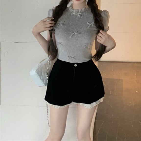 トップス パンツ シャツ セット レディース ショート 半袖 パフスリーブ ラウンドネック フェミニン フリル リボン ポケット ハイウエスト かわいい 大人可愛い きれいめ シンプル カジュアル おしゃれ こなれ感 ラフ ガーリー 個性的 主役級 存在感 ラブリー キュート ロリータ 都会的 クラシカル ロマンティック ナチュラル 無地 春 夏 秋 ロングシーズン デート お出かけ イベント リゾート 旅行 女子会 休日 バカンス ショッピング 合コン カフェ 普段使い S M L 黒 ブラック グレー