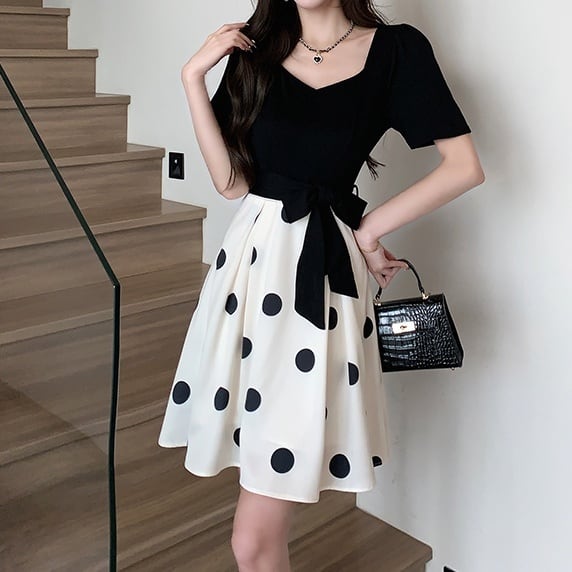 ワンピース ドレス レディース ミニ ショート 膝丈 膝下 ミモレ 半袖 タイト スリム 細身 Aライン 切り替え フェミニン リボン ハイウエスト かわいい 大人可愛い きれいめ シンプル おしゃれ こなれ感 ガーリー エレガント 主役級 存在感 キュート 都会的 クラシカル ロマンティック ナチュラル 無地 ドット柄 水玉 春 夏 秋 ロングシーズン デート お出かけ イベント リゾート 旅行 休日 バカンス ガーデン ショッピング カフェ 美脚 脚長 普段使い S M L 黒 ブラック オフホワイト