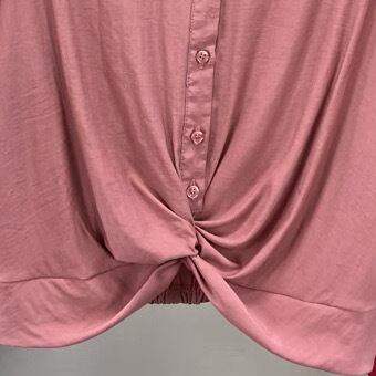 タックインをしているかのような、裾がねじれているデザインで、簡単に一枚でこなれ感のあるスタイリングを完成させることができます。