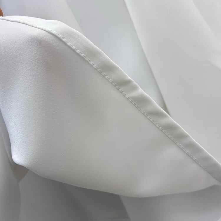ネックの中心部分に施されたギャザーがドレープ感を生み出し、エレガントで上品な雰囲気を醸し出します。