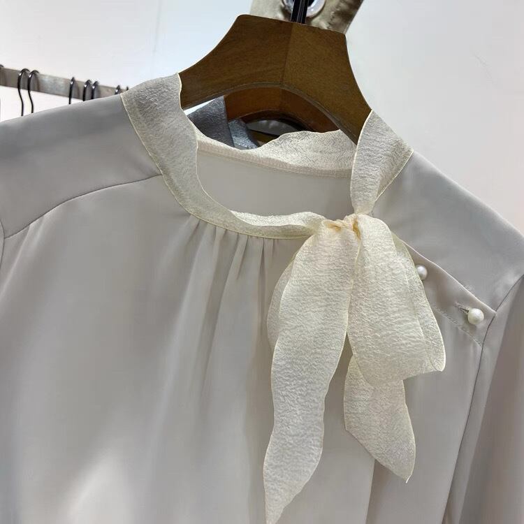 レディース トップス シャツ ブラウス 長袖 ハイネック スタンドカラー ボウタイ りぼんタイ スリム フォーマル フェミニン タックイン 裾イン リボン コンサバ ボタン 薄手 かわいい 大人可愛い きれいめ 上品 おしゃれ こなれ感 エレガント ロマンティック 無地 春 秋 入学式 入園式 卒業式 卒園式 謝恩会 母の日 会議 ママ オフィス OL 通勤 デート パーティー レストラン ホテル ショッピング 韓国 オルチャン コーデ 普段使い 着回し M L XL 白 ホワイト グレー オフホワイト