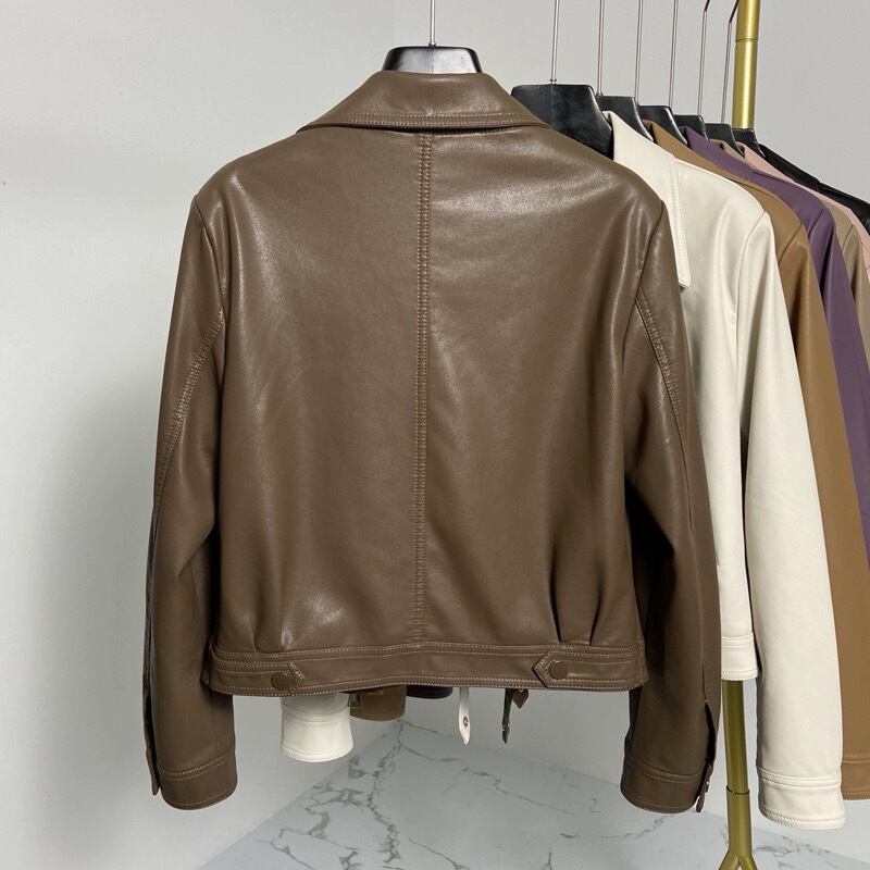レディース トップス ジャケット アウター 上着 前開き レザージャケット ショート 長袖 襟付き スリム ストレート ファスナー ポケット ヴィンテージ アメカジ ウォッシュ レザー PU シンプル カジュアル おしゃれ かっこいい メンズライク アメリカン 無地 春 秋 お出かけ アウトドア ショッピング ツーリング コーデ コーディネート スタイル 普段使い 着回し サイズ M L XL 2XL 3XL 大きい ブラウン オフホワイト カーキ パープル ブラック ピンク グレー グリーン レッド