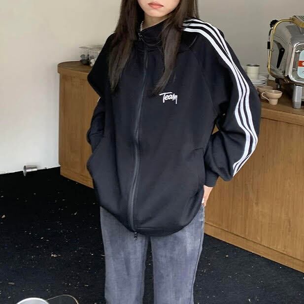 レディース アウター ジャケット ジャージ 長袖 スタンドカラー ストライプ ポケット ジッパー 前開き ユニフォーム ルーズ きれいめ 上品 おしゃれ お洒落 大人可愛い 大人女子 個性的 カジュアル スポーティー クール モダン フェミニン レトロ 主役級 存在感 こなれ感 抜け感 秋 10代 20代 30代 お出かけ スポーツ 運動 アウトドア 旅行 お泊まり 休日 普段使い デイリー 韓国 韓国系 オルチャン ファッション コーデ スタイル S M L XL 2XL レッド グレー ブラック