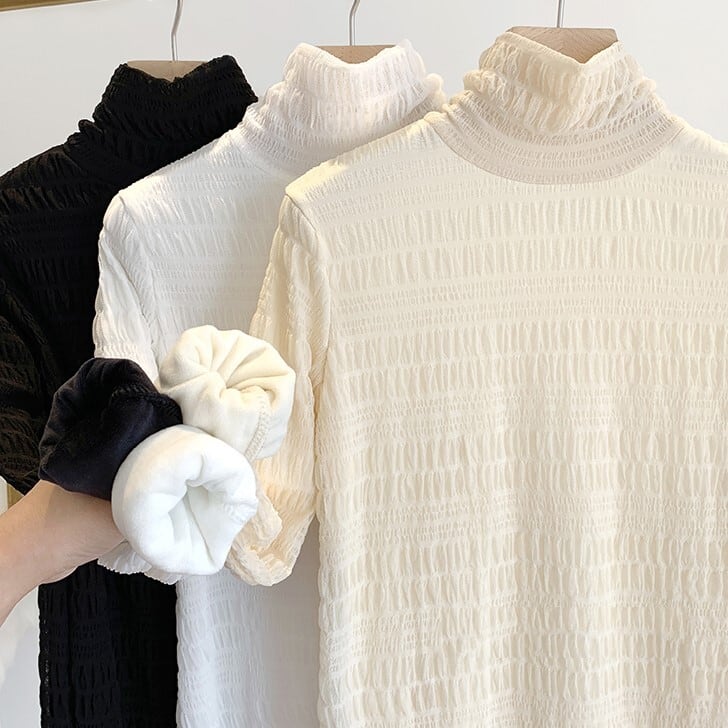 ハイネックとレースのディテールが女性らしさを引き立て、ストレートなシルエットは都会的でおしゃれな印象を与えます。無地のシンプルなデザインは、季節やコーディネートを選ばず、着回し力抜群。通勤やデート、お出かけからイベントや旅行まで、幅広いシーンで活躍します。