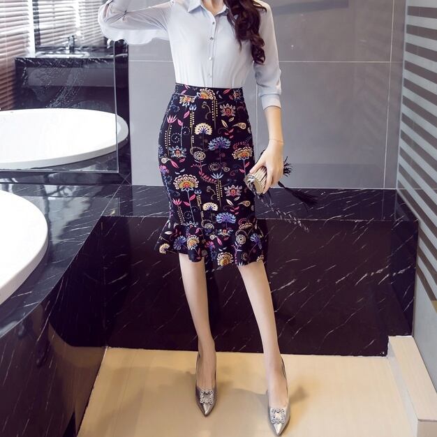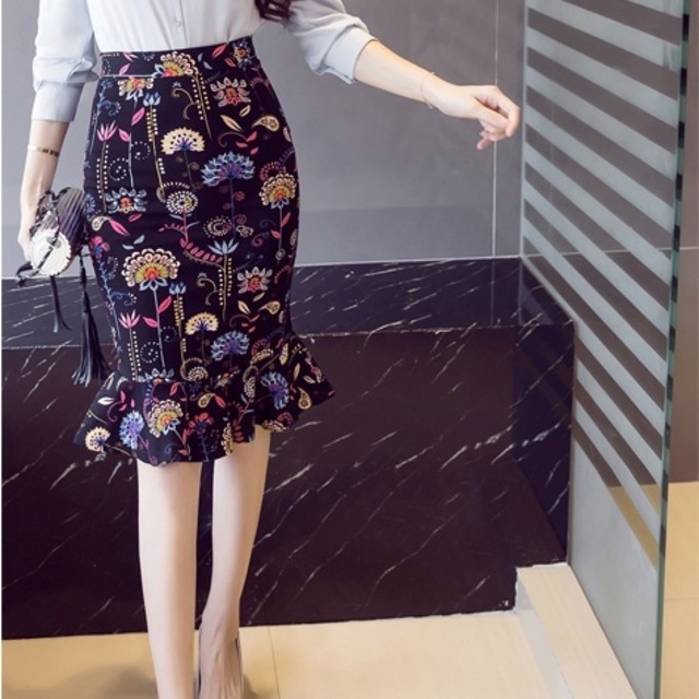 スカート タイトスカート 膝上 レディース ミモレ スリム 細身 フィッシュテール ハイウエスト 大人可愛い きれいめ おしゃれ かっこいい こなれ感 個性的 クール エレガント 存在感 都会的 セクシー 花柄 フラワー デート お出かけ イベント 旅行 休日 美脚 脚長 普段使い S M L 大人カラー