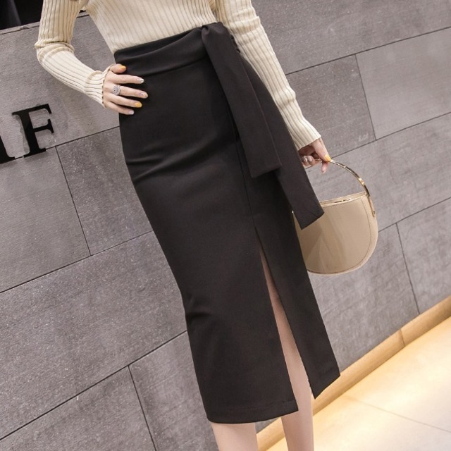 スカート 膝上 レディース ミモレ タイト スリム 細身 ウエストリボン サイドスリット ハイウエスト かわいい 大人可愛い きれいめ シンプル カジュアル おしゃれ かっこいい こなれ感 個性的 クール モード系 エレガント モダン 主役級 存在感 都会的 ベーシック セクシー 無地 春 夏 秋 ロングシーズン デート お出かけ イベント 旅行 休日 バカンス ショッピング 発表会 カフェ お揃い 双子 韓国 コーデ 美脚 脚長 普段使い S M L 黒 ブラック レッド 大人カラー