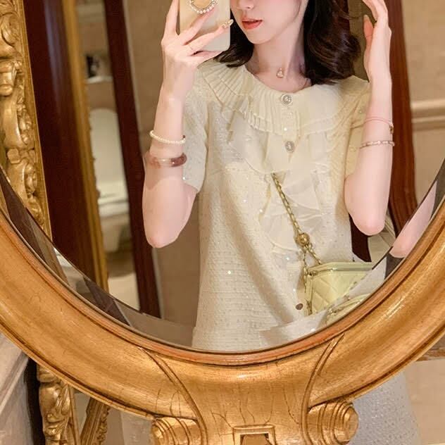 レディース ワンピース 半袖 ラウンドネック フリル ボタン Aライン プリーツ ショート丈 プルオーバー ハイウエスト スリム 細身 きれいめ 上品 おしゃれ お洒落 大人可愛い 大人女子 シンプル カジュアル エレガント キュート ラブリー ガーリー フェミニン レトロ 主役級 存在感 こなれ感 抜け感 春 夏 10代 20代 お呼ばれ お出かけ デート 女子会 ショッピング お泊まり 休日 普段使い 韓国系 オルチャン ファッション コーデ 美スタイル インスタ映え 脚長 S M L アプリコット
