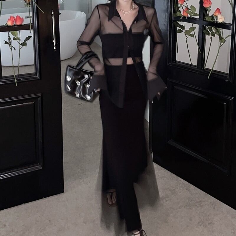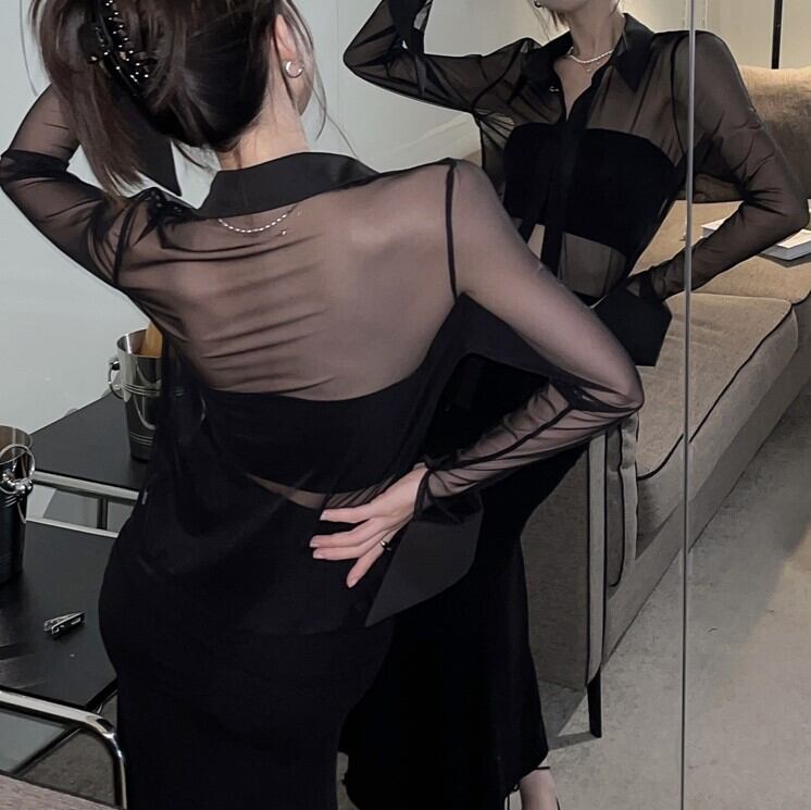 レディース トップス シャツ 長袖 襟付き スリム 透け感 シースルー ボタン 大人可愛い きれいめ おしゃれ かっこいい ラフ ガーリー クール 都会的 ロマンティック セクシー 無地 春 夏 通勤 デート お出かけ お泊まり イベント リゾート 旅行 海 プール レストラン ビーチ 公園 女子会 休日 バカンス ホテル ショッピング コンサート ライブ カフェ フェス 韓国 コーデ 楽ちん プレゼント 普段使い 着回し モテ インスタ映え 紫外線対策 UV対策 フリーサイズ ブラック