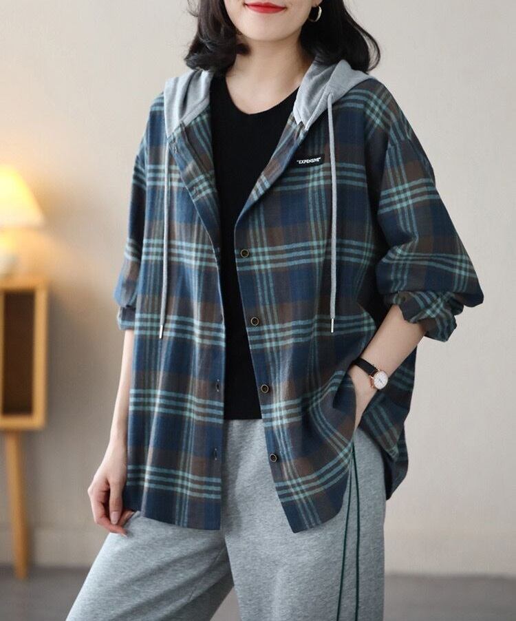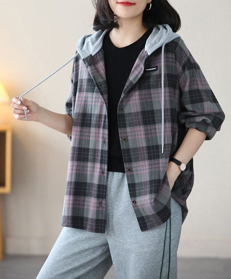 トレンド感満載のフード付きチェック柄シャツが登場しました!ドロップショルダーで着心地抜群、前開きデザインで着脱も楽々です。異素材ミックスが個性を引き立て、存在感を演出。大人可愛いカジュアルスタイルから、こなれた雰囲気まで幅広く活躍します。春から冬まで長い期間使える着回し力も魅力の一つ。カフェや公園、女子会など様々なシチュエーションにぴったりです。体型をカバーしながらも、楽ちんな着心地は毎日のお出かけを快適にしてくれること間違いなし!大人気の大きいサイズも揃えているので、どなたにもおすすめです。ぜひ、お気に入りのカラーでお迎えください。