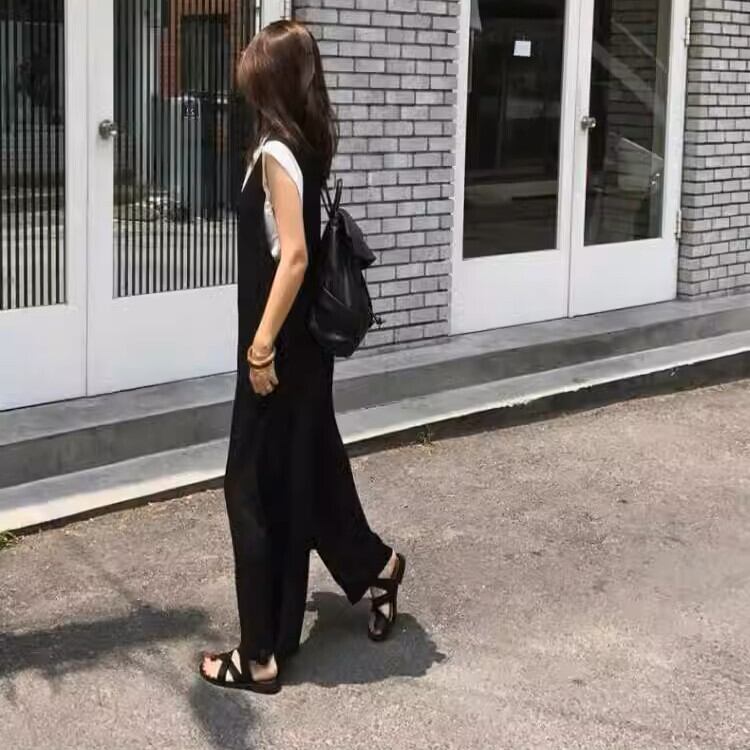 レディース パンツ サロペット オールインワン つなぎ パンツワンピ ロングパンツ ワイドパンツ ロング 袖なし ノースリーブ Vネック ワイド かわいい 大人可愛い きれいめ シンプル カジュアル おしゃれ かっこいい こなれ感 ラフ ルーズ モード系 エレガント 抜け感 都会的 ベーシック 無地 春 夏 ママ 学生 デート お出かけ アウトドア 公園 女子会 休日 ショッピング モノトーン 重ね着 韓国 コーデ 楽ちん 体型カバー 普段使い レイヤード S M L XL ゆったり ゆる 黒 ブラック
