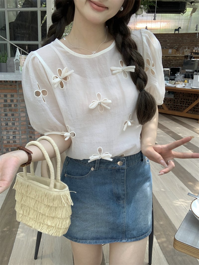 アンサンブル トップスセット シアーブラウス キャミ レディース トップス ブラウス キャミソール ゆったり ミディアム 半袖 5分袖 ボリューム袖 パフスリーブ ラウンドネック 襟なし ノーカラー リボン 透け感 花型カットアウト かわいい 大人可愛い きれいめ シンプル カジュアル 上品 おしゃれ こなれ感 抜け感 キュート ナチュラル フェミニン 無地 春 夏 ママ 女の子 デート お出かけ リゾート 旅行 公園 女子会 休日 バカンス 重ね着 普段使い 着回し レイヤード フリーサイズ ベージュ