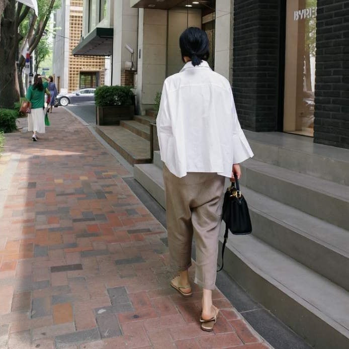 角襟と裾ワイドがおしゃれなアクセントになっています。
