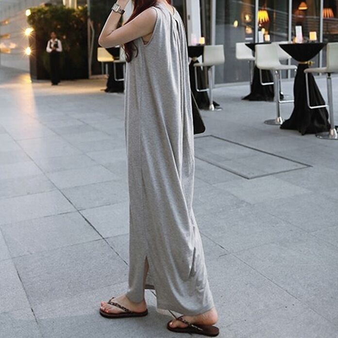 ワンピース ロング レディース 袖なし ノースリーブ ラウンドネック Iライン 大人可愛い きれいめ シンプル カジュアル 上品 おしゃれ かっこいい こなれ感 ラフ スポーティー ルーズ クール 存在感 抜け感 キュート 都会的 アクティブ ナチュラル セクシー 無地 春 夏 秋 ロングシーズン デート お出かけ お泊まり アウトドア キャンプ リゾート 旅行 レストラン 公園 休日 バカンス ショッピング カフェ 楽ちん 体型カバー 普段使い 着回し S M L ゆったり ゆる グレー ライトグレー