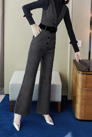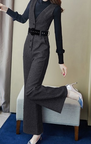 レディースのためのニットスーツセット、それがこのアイテムです。タートルネックとワイドパンツが大人っぽい印象を演出し、ノースリーブのトップスは涼しげな装いにしてくれます。ベルトとポケット、ハイウエストのデザインがスタイリッシュな雰囲気を醸し出し、ボタンがアクセントとなっています。このアイテムは、大人可愛いからシンプル、おしゃれからかっこいい、ラフからガーリー、クールから都会的まで、幅広いスタイルにマッチします。
