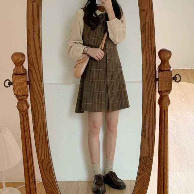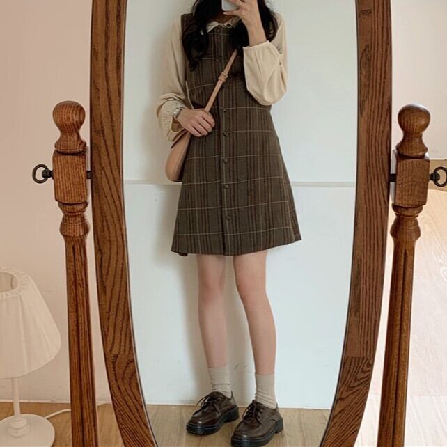 レディース トップス ワンピース ショート ノースリーブ 長袖 Aライン ボタン 大人可愛い きれいめ シンプル おしゃれ かっこいい レトロ ラフ ガーリー クール 都会的 ナチュラル チェック 秋 冬 通勤 デート お出かけ お泊まり イベント 旅行 レストラン 公園 女子会 休日 ホテル ショッピング コンサート ライブ カフェ フェス 韓国 コーデ 楽ちん プレゼント 普段使い 着回し モテ インスタ映え S M L XL ブラウン アプリコット