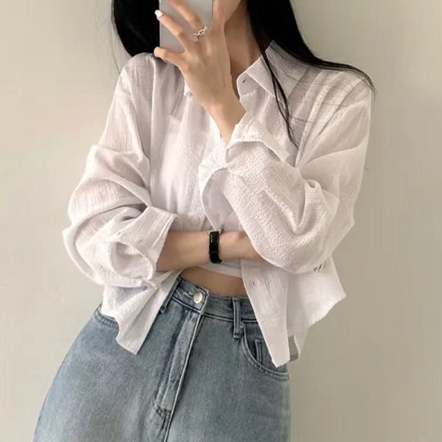程よい透け感がオシャレな薄手で軽やかな生地感のショート丈シャツ。