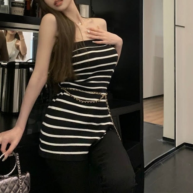 レディース トップス チューブトップ ノースリーブ サイドスリット ボタン ボーダー スリム 細身 きれいめ 上品 おしゃれ お洒落 大人可愛い 大人女子 カジュアル エレガント セクシー キュート ラブリー ガーリー フェミニン レトロ 主役級 存在感 こなれ感 抜け感 夏 10代 20代 30代 お呼ばれ イベント お出かけ デート 女子会 ショッピング レストラン リゾート 海 お泊まり 韓国 オルチャン ファッション コーデ スタイルアップ 美スタイル インスタ映え S M L ホワイト ブラック