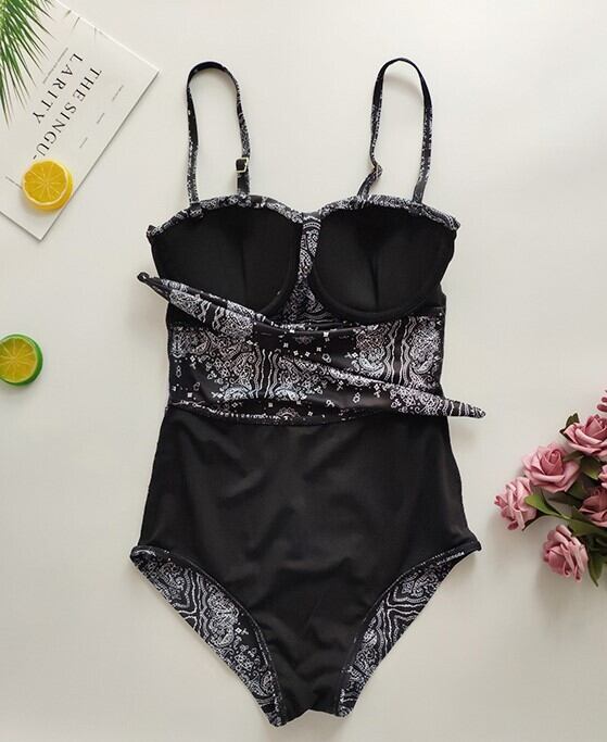 水着 レディース ワンピース パッド付き 大人可愛い きれいめ ゴージャス 華やか 大人っぽい おしゃれ お洒落 ガーリー クール モード系 スタイリッシュ かっこいい セクシー トレンド プリント リゾート 旅行 温泉 プール 夏 海 美脚 韓国 モテ インスタ映え S M L ブラック