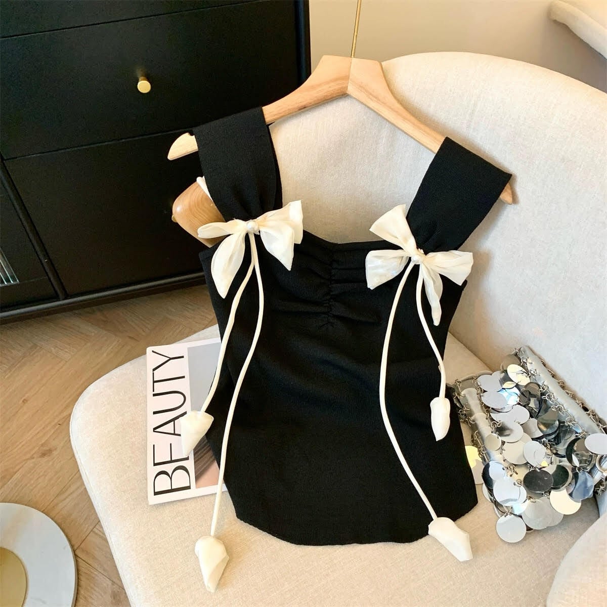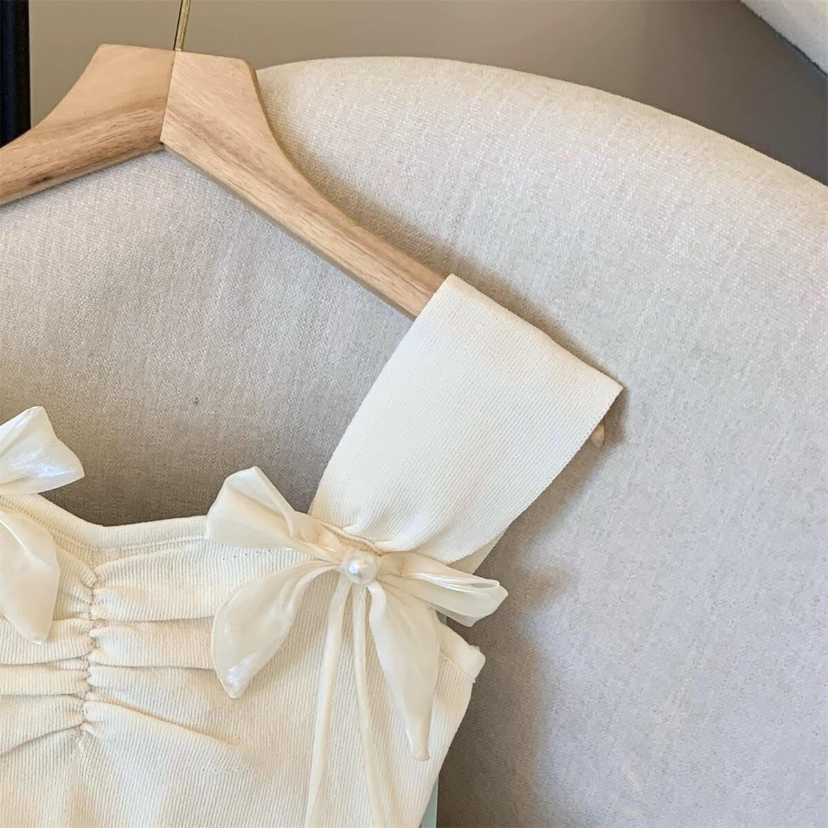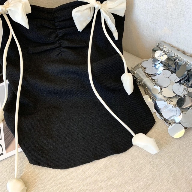レディース トップス キャミソール ノースリーブ ニット リボン プリーツ ショート丈 スリム 細身 きれいめ 上品 おしゃれ お洒落 大人可愛い 大人女子 カジュアル エレガント キュート ラブリー ガーリー フェミニン レトロ 主役級 存在感 こなれ感 抜け感 夏 10代 20代 お出かけ デート 女子会 リゾート 海 プール ショッピング 旅行 お泊まり 休日 普段使い 韓国 韓国系 オルチャン ファッション コーデ スタイルアップ 美スタイル インスタ映えワンサイズ アプリコット ブラック